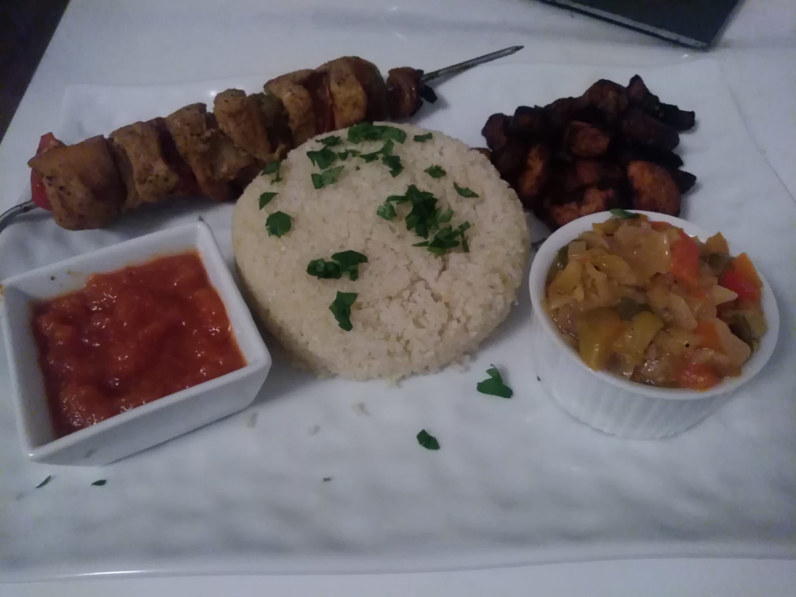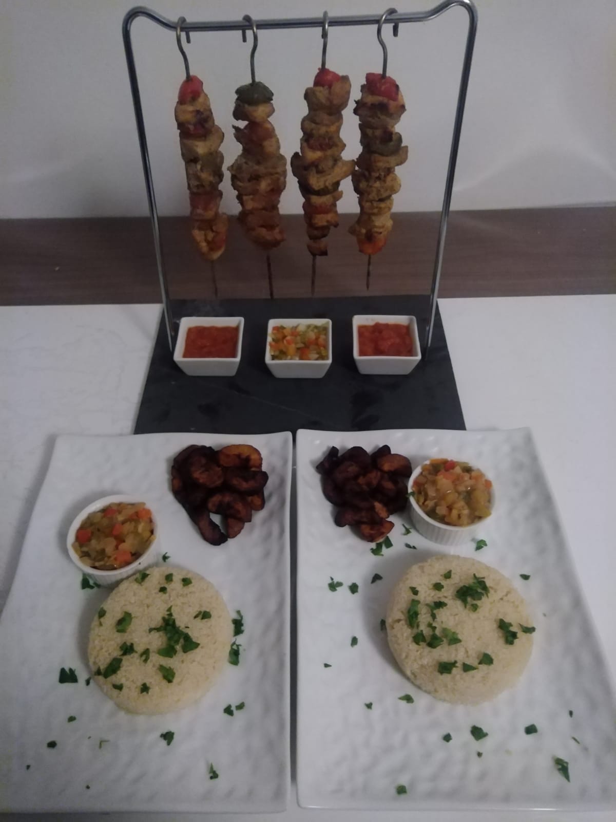 Brochettes - riz à la sauce piquante